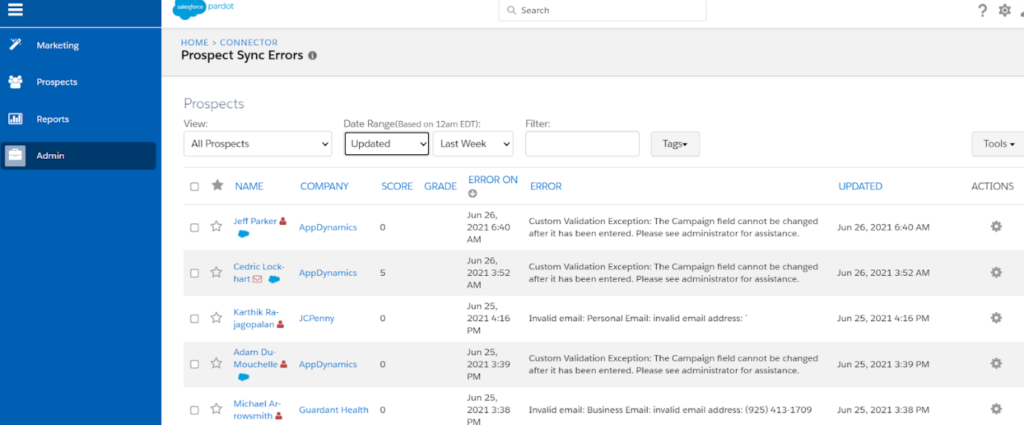We investigated the client's Pardot platform to check what synchronization errors caused inconsistency. Most errors were related to picklist field value inconsistency in both systems, invalid emails, and incorrect validation rules.